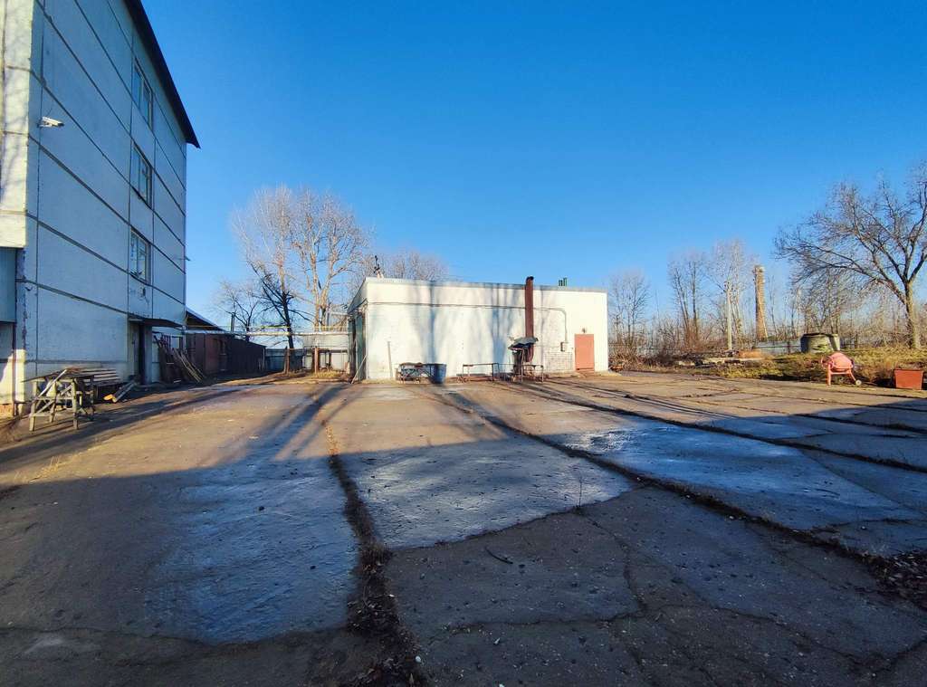 Отопление - собственная газовая котельная. Общая площадь 3800 м2. На территории расположена кирпичная одноэтажная пристройка площадью 400 м2, газовая котельная, КТП, действующая сушильная камера для дерева.